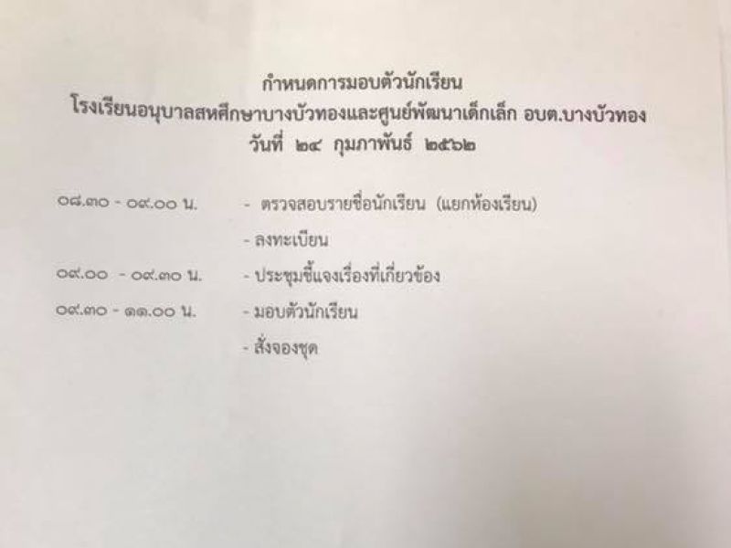 กำหนดการมอบตัวนักเรียน โปรรดอ่านและมาตามเวลาดังกล่าว